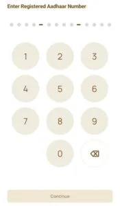 स्टेप :4 – आगे आपको अपना आधार कार्ड नंबर डाल कर Continue करना हैं।