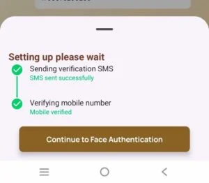 स्टेप :7 – उसके बाद आपका Mobile verified होगा और आगे Continue to Face Authentication करें।