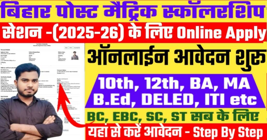 Bihar Post Matric Scholarship 2025-26 के लिए ऑनलाइन आवेदन की प्रक्रिया 15 सितंबर, 2025 से शुरू, 10वीं, 12वी, स्नातक,स्नातकोत्तर, ITI,