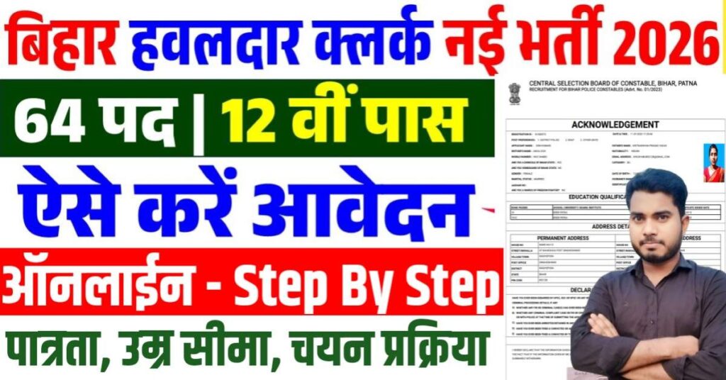 Bihar Police Havildar Clerk Vacancy 2026 – 12वीं पास के लिए सरकारी नौकरी, आयु सीमा, परीक्षा पैटर्न और ऑनलाइन आवेदन शुरू, जानें पूरी जानकारी।