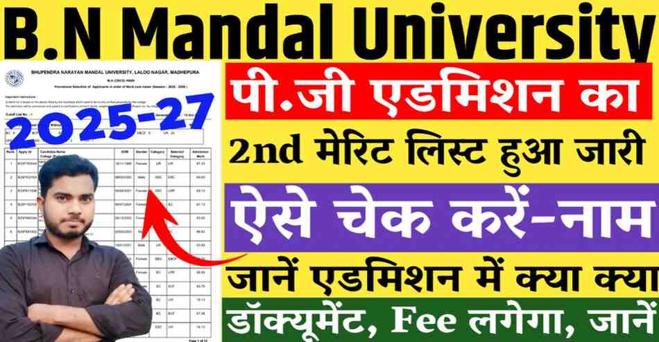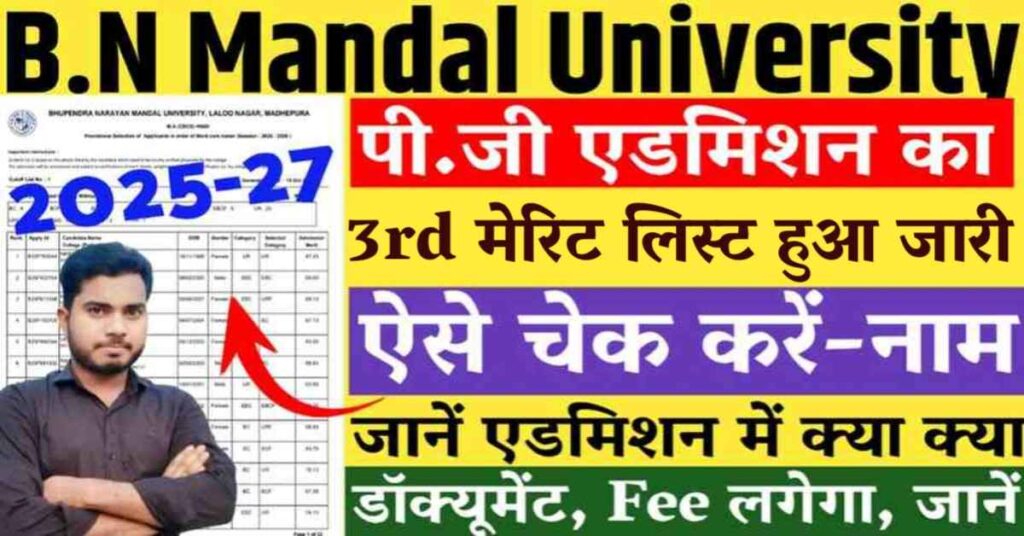 BNMU PG Admission Third Merit List 2025 -पीजी 1st सेमे. में एडमिशन के लिए 3rd मेरिट लिस्ट हुआ जारी, यहां से चेक करें अपना अपना नाम, जानें एडमिशन की पूरी प्रक्रिया