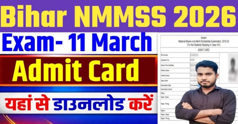 Bihar NMMSS Admit Card 2026 – नमस्कार दोस्तों आज आप सभी को इस आर्टिकल के माध्यम से बताएंगे कि बिहार NMMSS स्कॉलरशिप परीक्षा का एडमिट कार्ड जारी कर दिया गया है, यहाँ से करें डाउनलोड राज्य शिक्षा शोध एवं प्रशिक्षण परिषद (SCERT), बिहार ने राष्ट्रीय आय-सह-मेधा छात्रवृत्ति (NMMSS) परीक्षा सत्र 2025-26 के लिए आधिकारिक रूप से Admit Card (प्रवेश पत्र) जारी करने की प्रक्रिया शुरू कर दी गई है। ऐसे सभी छात्र कक्षा 8वीं में पढ़ रहे हैं और जिन्होंने इस स्कॉलरशिप के लिए ऑनलाइन माध्यम से आवेदन फॉर्म भरा था, वे अब अपना हॉल टिकट आधिकारिक वेबसाइट में जाकर ऑनलाइन डाउनलोड कर सकते हैं।