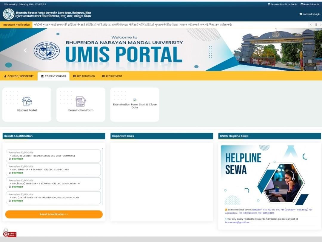 • सबसे पहले BNMUUMIS के OFFICIAL वेबसाइट पर आना है।
