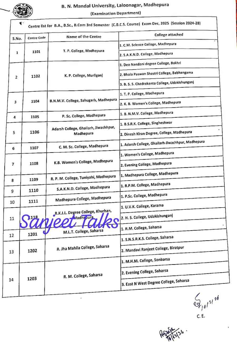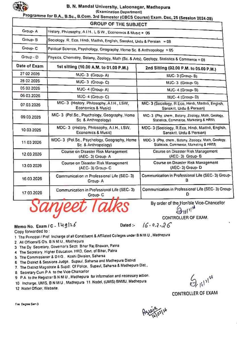 | Name of Post | BNMU Ug 3rd Semester Exam Date 2024-28 |