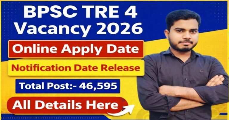 BPSC TRE 4 Vacancy 2026 से जुड़ी पूरी जानकारी यहां पाएं। नोटिफिकेशन कब आएगा, कुल 46,595 वैकेंसी, योग्यता, आवेदन प्रक्रिया और परीक्षा तिथि की ताजा अपडेट एक ही जगह। Bihar Public Service Commission द्वारा आयोजित शिक्षक भर्ती परीक्षा की पूरी जानकारी हिंदी में।