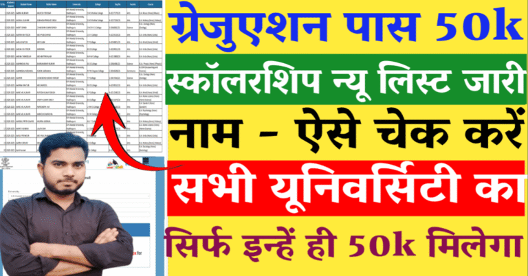 ग्रेजुएशन पास 50k स्कॉलरशिप के लिए न्यू लिस्ट चेक करने के लिए आपको महत्वपूर्ण लिंक प्रोवाइड करवाएंगे ताकि आप सभी आसानी से चेक कर पाएंगे।