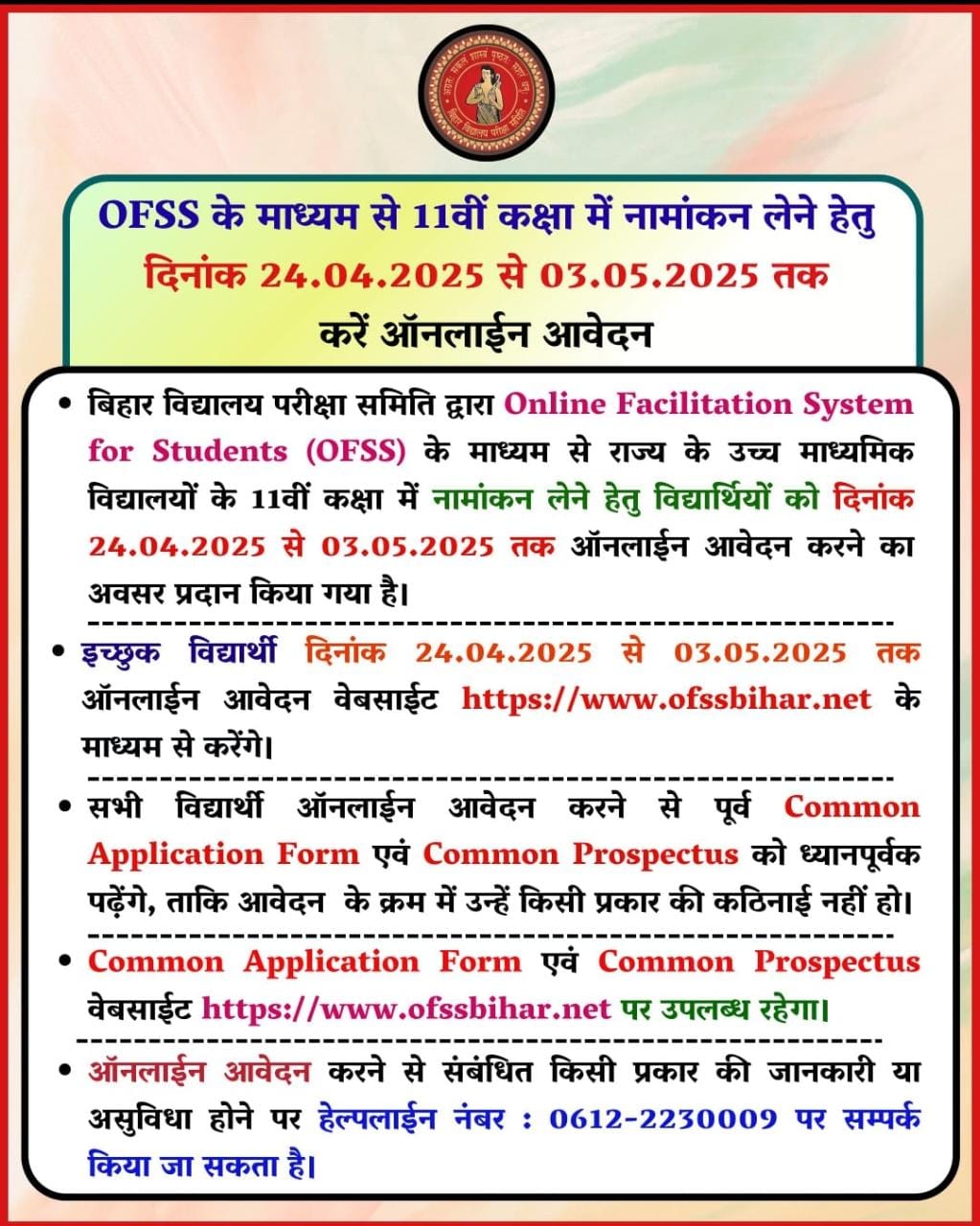 बिहार बोर्ड ने इंटर / 11वीं एडमिशन के लिए कॉलेज लिस्ट किया जारी, इस दिन से एडमिशन के लिए अप्लाई होगा – OFSS Bihar Inter Admission 2025?