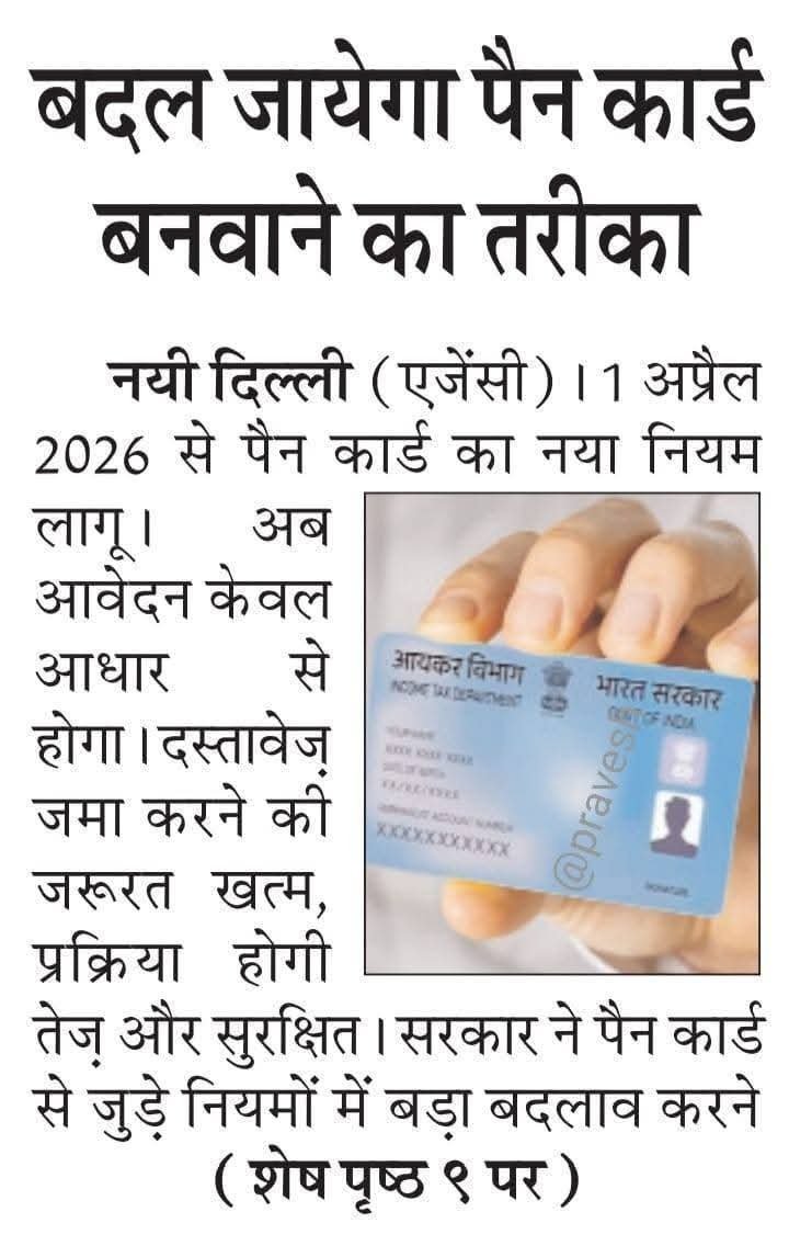 नया पैनकार्ड बनाने के अब ये सभी डॉक्यूमेंट की जरूरत होगी, 01 अप्रैल, 2026 से PAN कार्ड बनवाने के लिए, आइए जानते हैं कौन – कौन सा डॉक्यूमेंट का जरूरत पड़ेगा :–